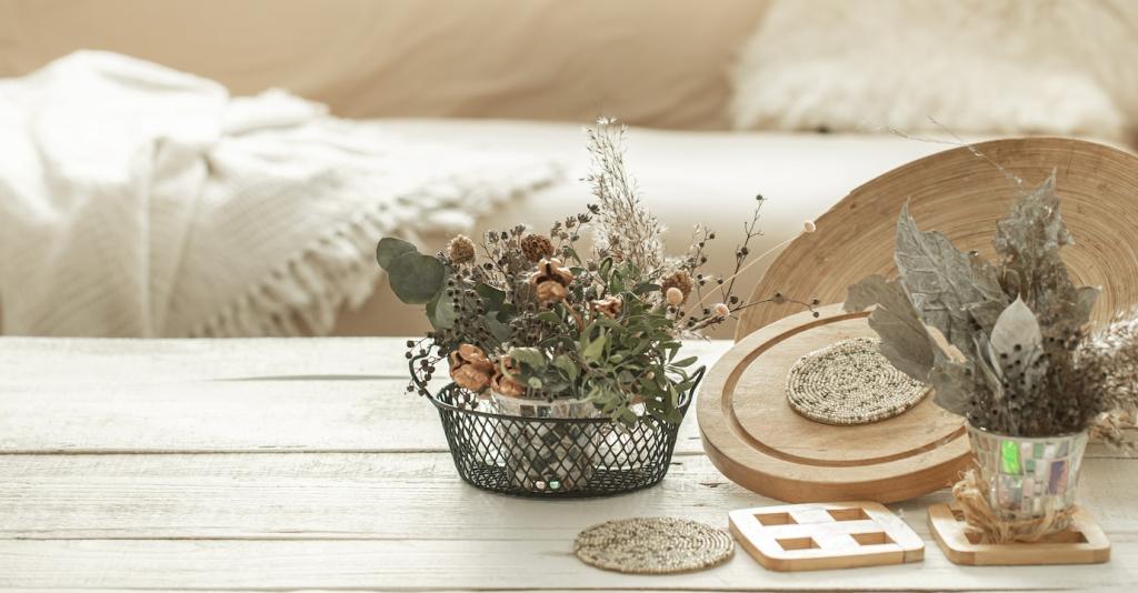 Von der Gewinnung bis zur Entsorgung entscheidet die Materialwahl über Energieverbrauch, Emissionen und Abfall. Kork, Lehm oder recyceltes Metall senken den CO2-Fußabdruck, sind langlebig, reparierbar und fühlen sich zugleich bemerkenswert angenehm an. Teilen Sie Ihre Erfahrungen in den Kommentaren!